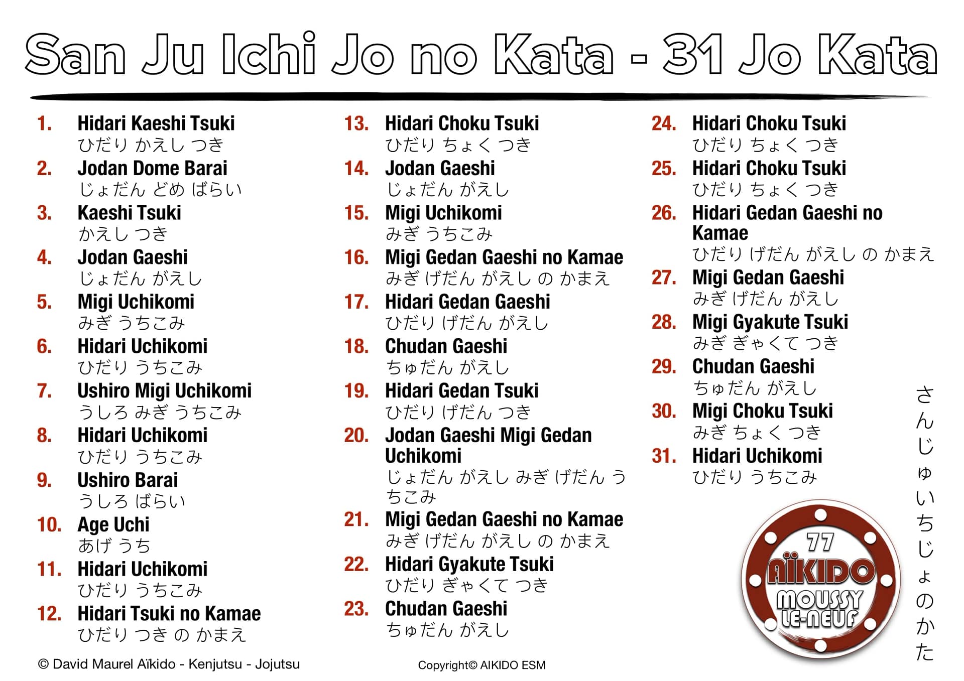 JO TAI JO : 31 JO KATA AWASE (avec un partenaire)