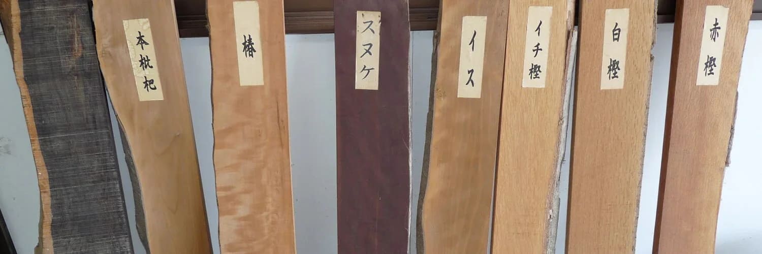 A Miyakonojo, où 90% des armes en bois vendues au Japon sont fabriquées, on utilise principalement des bois issus de la forêt de « Kirishima Sankei » (sud de Kyushu), à l’exception du « kiri » poussant dans le nord du Japon (Hokkaido), du « Shima Kokutan (ébène asiatique)» provenant d’Asie et du « Hon kokutan » (vrai ébène – provenant d’Afrique).