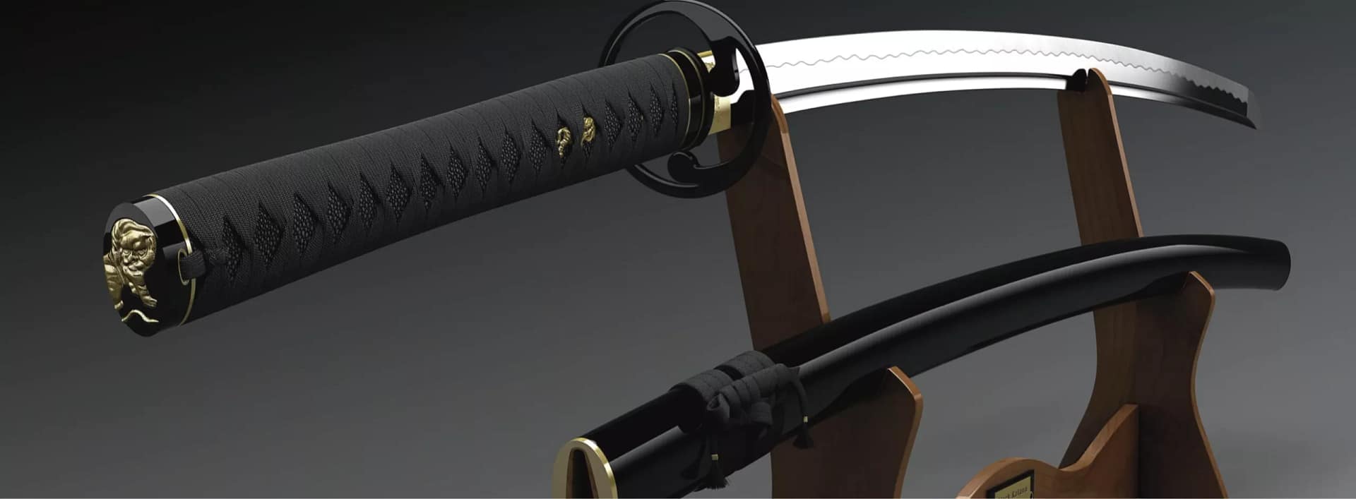 Elles peuvent être stockées sur un support (Katanakake) ou simplement dans leur sac, à même le sol (faites bien attention à ne pas stocker vos armes dans une salle qui serait trop humide ou trop sèche).