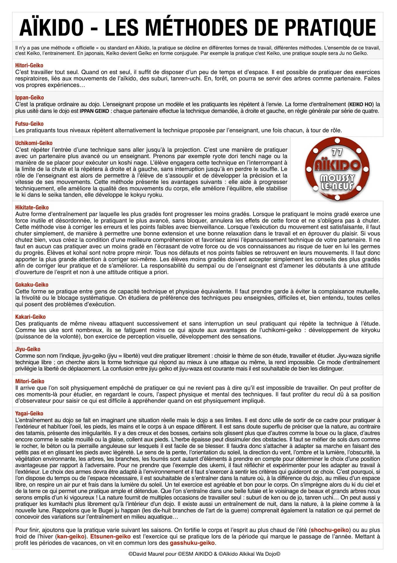 Retrouvez ci-dessous, un article détaillant les différentes formes et variations de travail (l’ensemble des Waza)